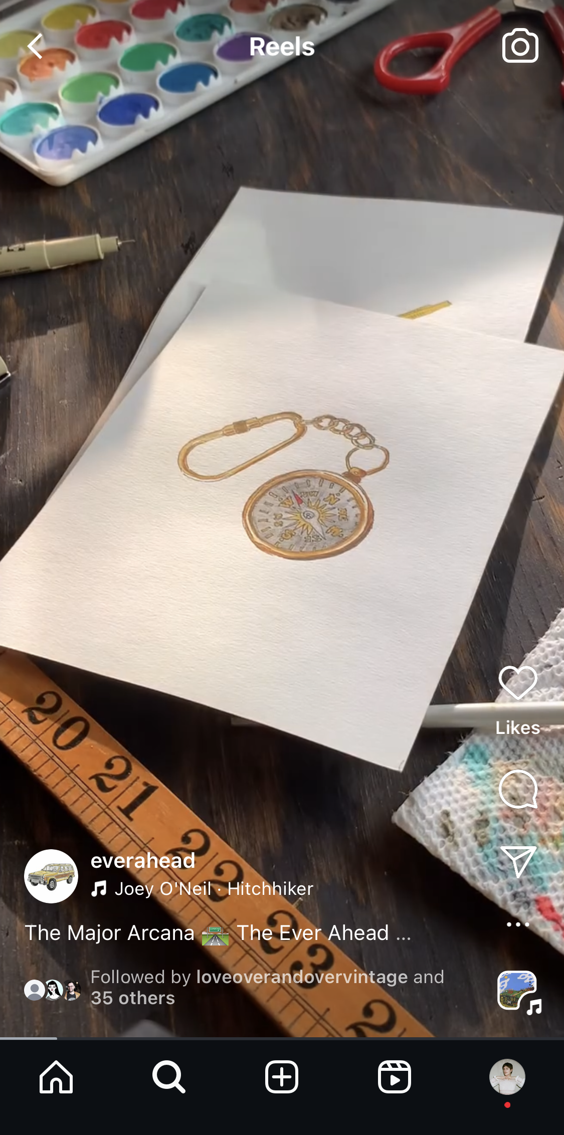 The Ever Ahead Tarot is a road-trip tarot deck featuring 78 original watercolour illustrations by Joey O’Neil. Inspired by her musical album Ever Ahead (2020) and fully funded on Kickstarter, posted content includes painting progress, production updates, and O’Neil’s own road-trip journeys. The account’s mood, like any good road-trip, is fun, folksy, retro, and campy. Its palette combines wood-panelled tones and vibrant colours referenced from the deck’s artwork with white space to allow images to breathe.